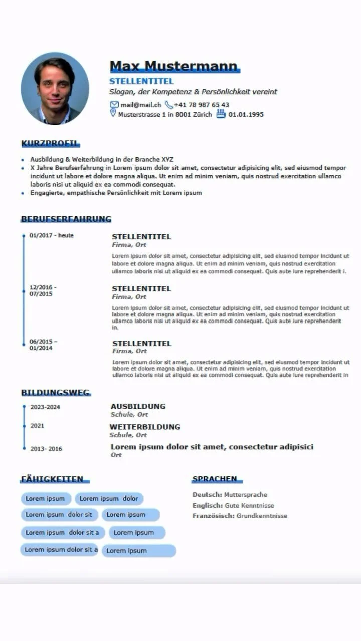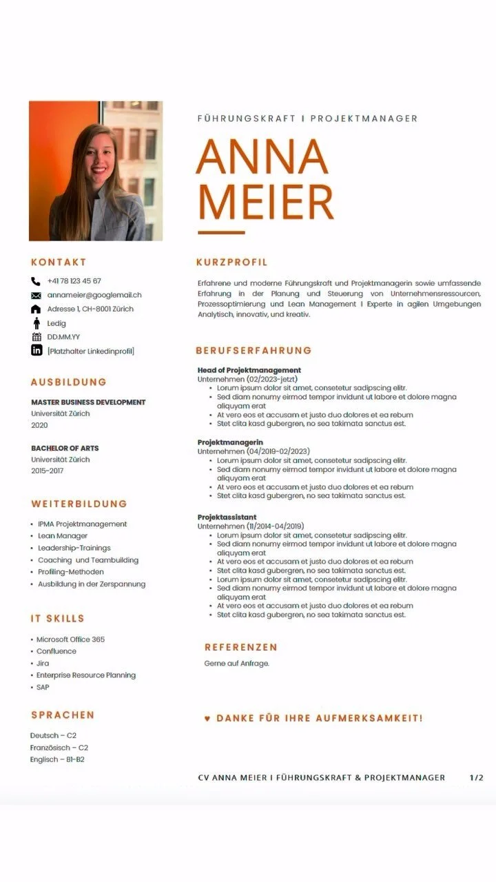 Falls du noch Anpassungen wünschst, machen wir gerne innert einer Woche ab Erstlieferung Änderungen bis die neuen Bewerbungsunterlagen perfekt sind.